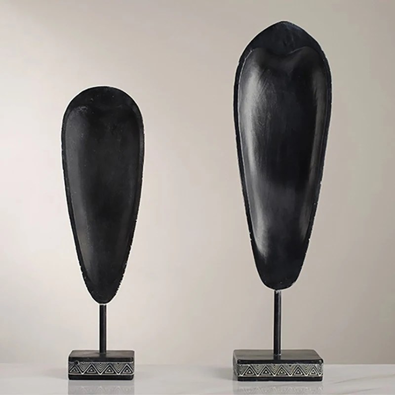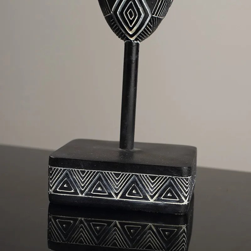 African Style Face Mask Ornament Sculpture Decoration Resin Arts And Crafts Originality Pattern Carving Retro With Base For Home
