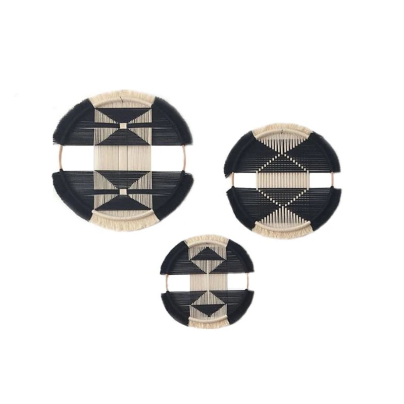 Specifications: Material: 100% Cotton Pattern: Yarn Dyed Technics: Handmade Size Options: Style A (Diameter 30cm), Style B (Diameter 25cm), Style C (Diameter 35cm), Style D (Diameter 25cm), Style E (Diameter 30cm), Style F (Diameter 25cm) Color: As Shown Packing List: 1*Tapestry Features: |Boho Biloxi Social House|Decorative Metal Products| **Elegant Nordic Design** The Creative Gold Hoop Round Cotton Wall Decoration Macrame Wall Hanging Tapestry is a testament to the craftsmanship of the Nordic style. Handwoven with 100% cotton, this macrame wall hanging features a solid pattern that exudes simplicity and elegance. Its yarn-dyed material ensures a vibrant and lasting color that complements any room decor. The tapestry's versatile size options cater to various spaces, making it an ideal choice for both small and large rooms. **Versatile Home Decor** This macrame wall hanging is not just a piece of art; it's a porch home assistant gold. It serves as a decorative metal product that adds a touch of sophistication to your living space. Whether you're looking to enhance your bedroom, living room, or even your porch, this tapestry is a perfect fit. Its handmade nature means that each piece is unique, adding a personal touch to your home decor. **Easy Maintenance and Care** The natural cotton rope used in this macrame wall hanging may have a slight smell upon arrival, but it's a normal characteristic of the craftsmanship. This smell will dissipate after a few days when hung on the wall. To clean the tapestry, it's recommended to use a blower or pop it up to remove dust. The tapestry's durability and ease of maintenance make it a practical and stylish addition to your home decor.
